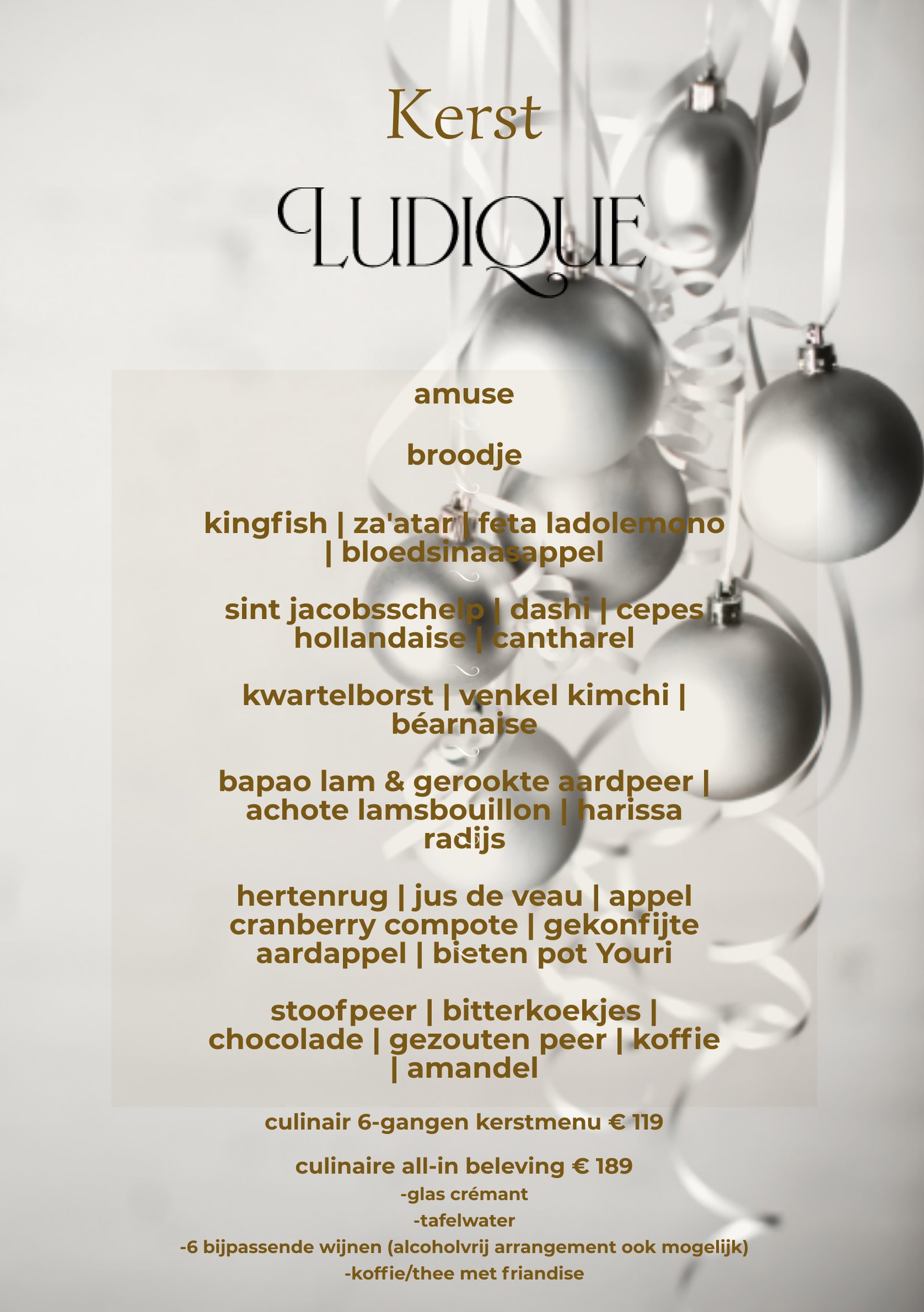 Bij Ludique draait het altijd om wat eten en drinken met je doet. Niet alleen op je tong, maar ook in je hoofd. Daarom stellen we voor jullie gelegenheid een speciaal menu samen, afgestemd op het seizoen, op jullie voorkeuren, op het moment. Denk aan:
